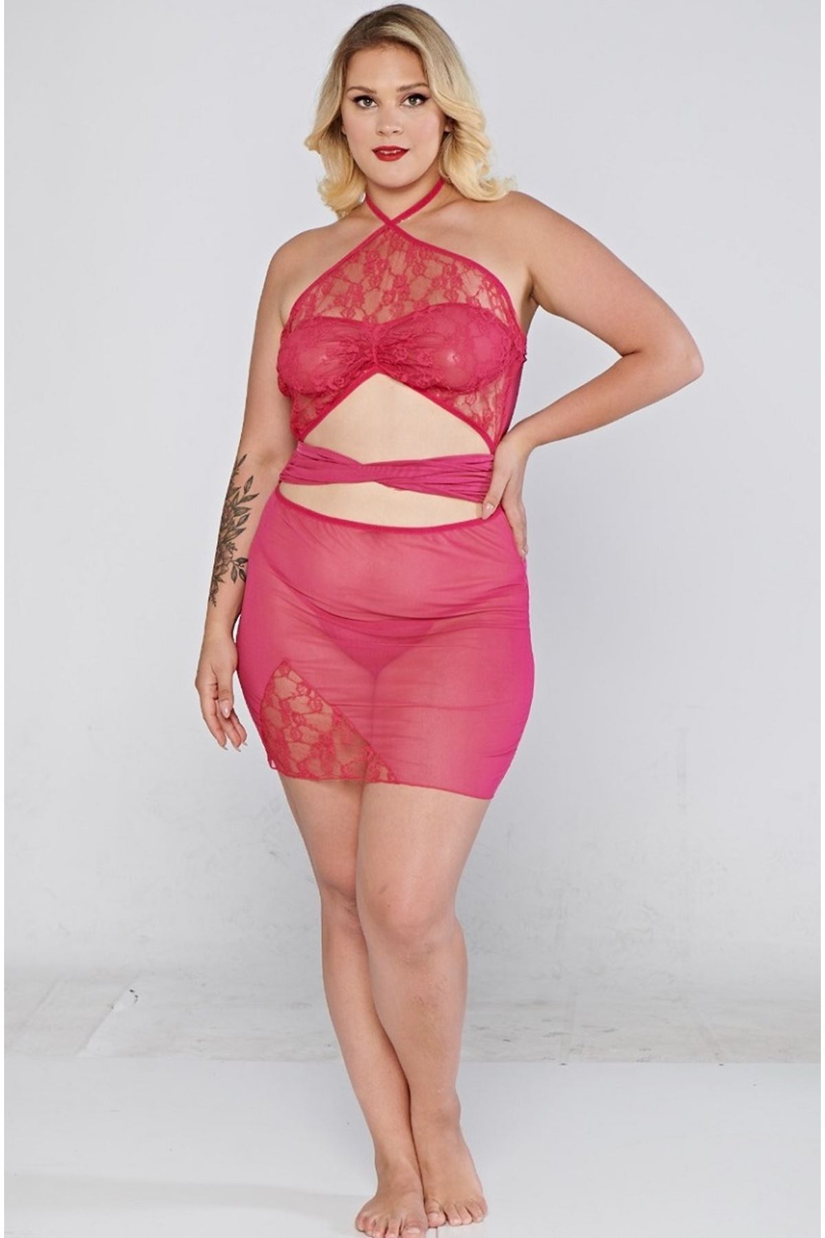 Kadın Büyük Beden Gecelik Pembe Tül Fantezi Gecelik