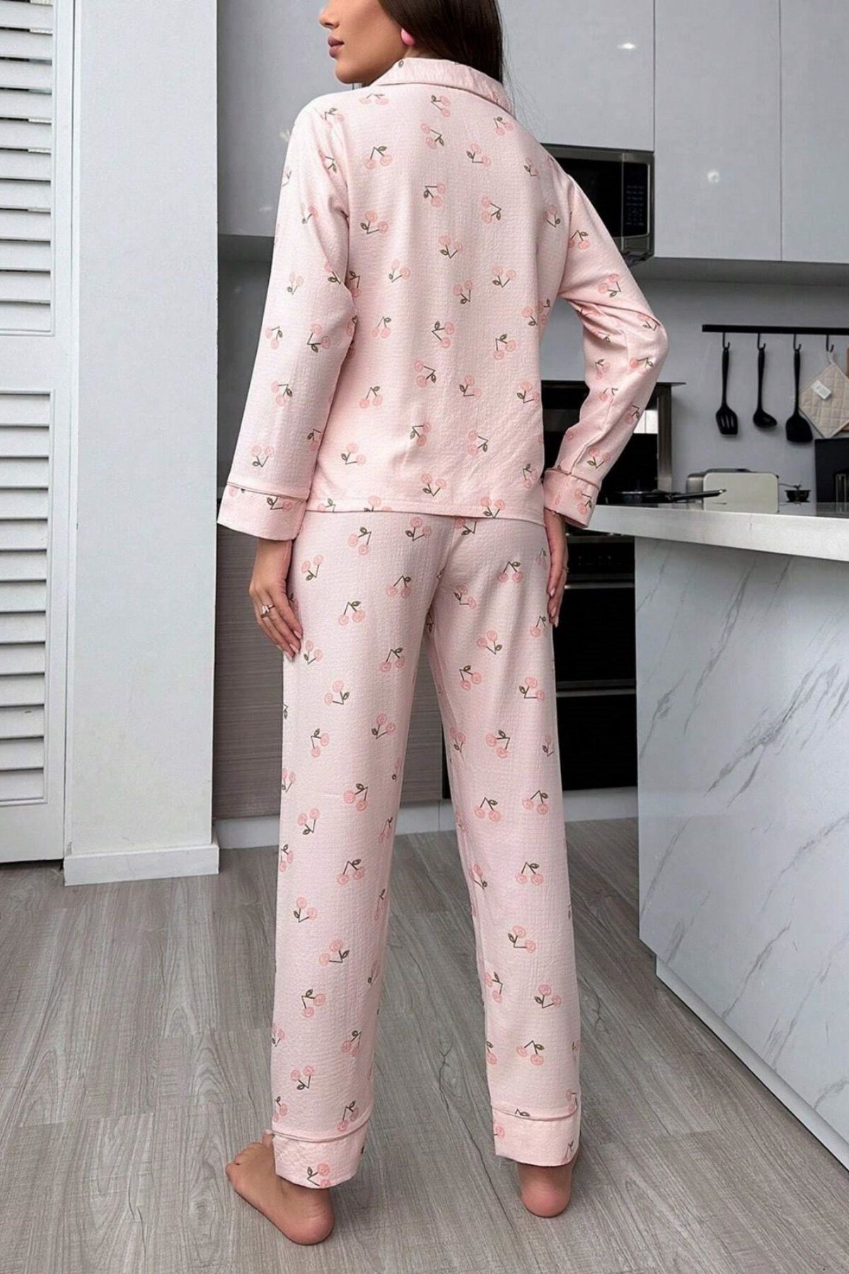 Sia Less Toz Pembe Sonbahar Kirazları Soft Pijama Takımı 7039